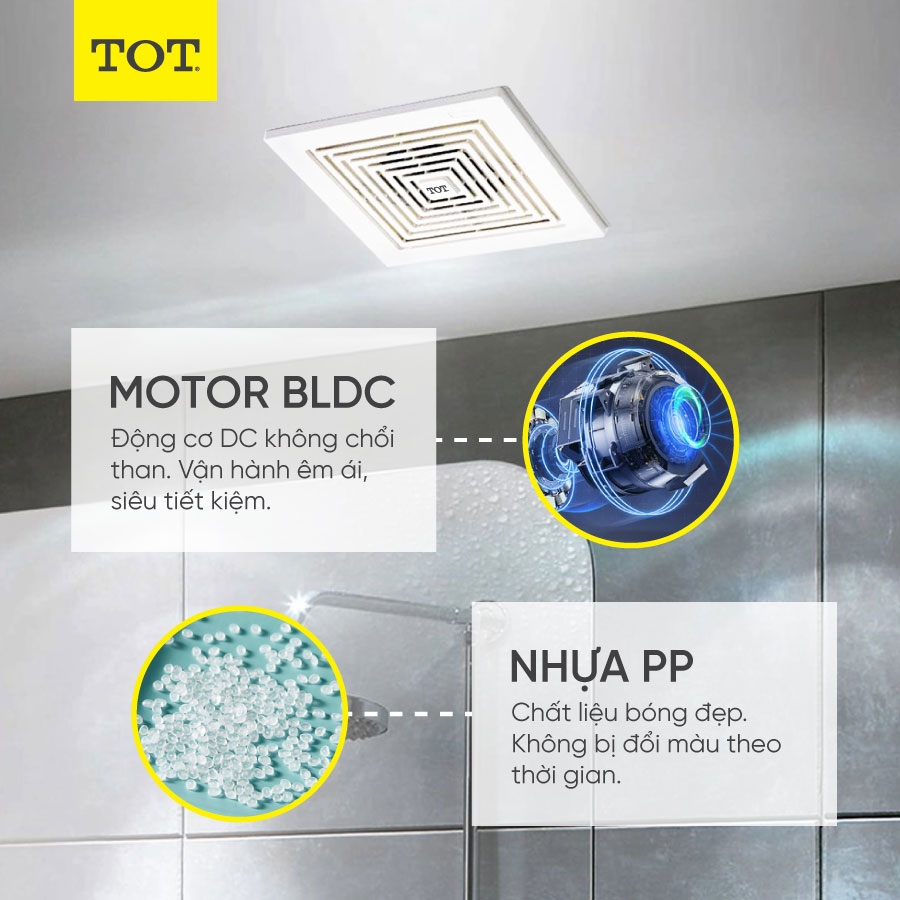 Quạt sử dụng motor BLDC (DC không chổi than), siêu êm ái, siêu tiết kiệm điện.
